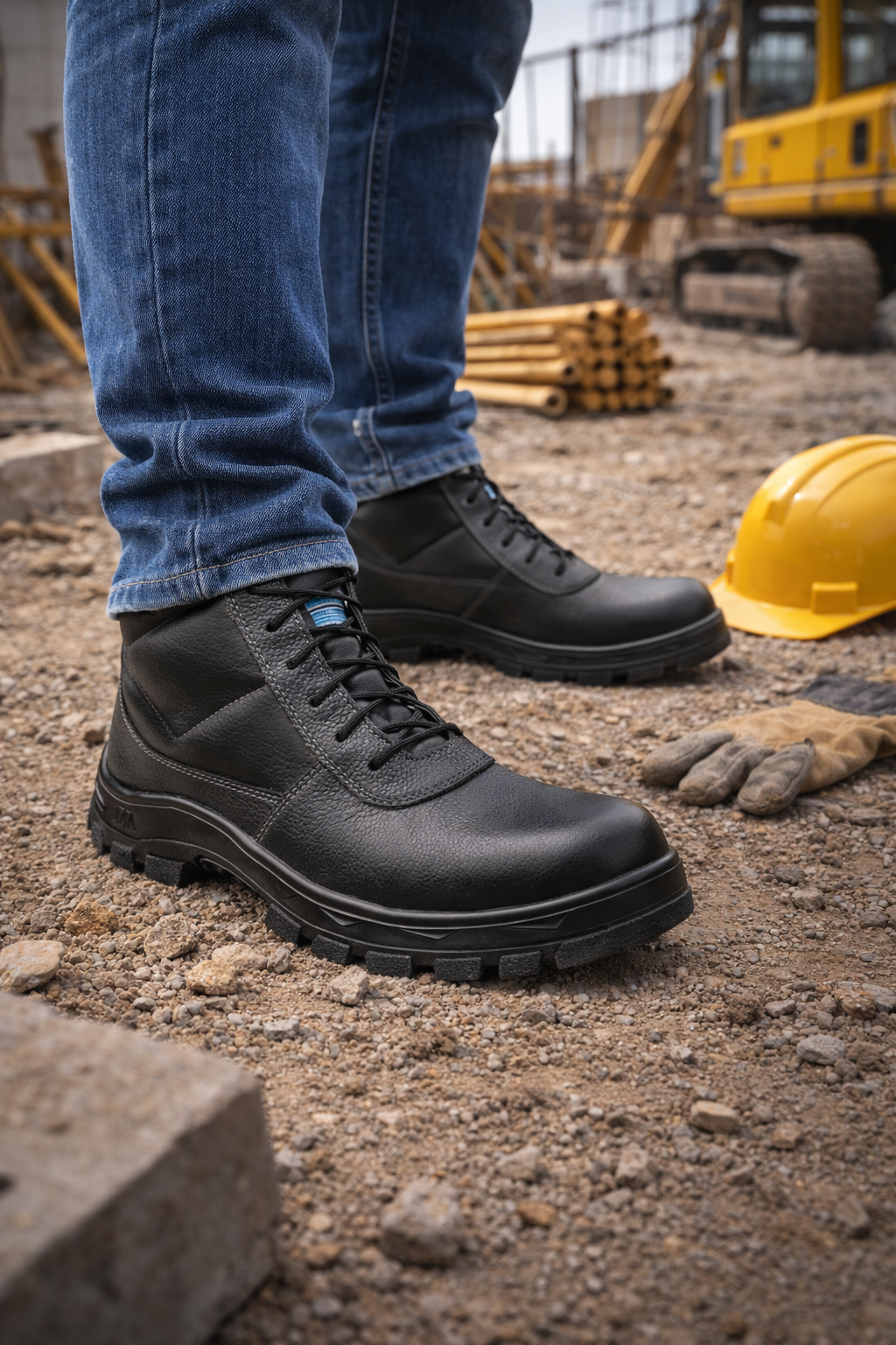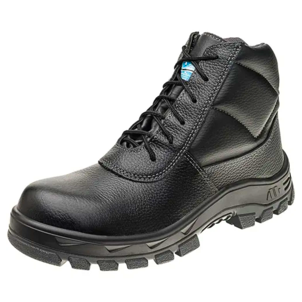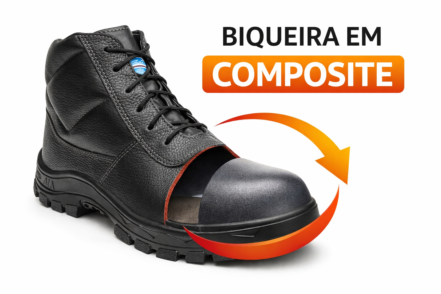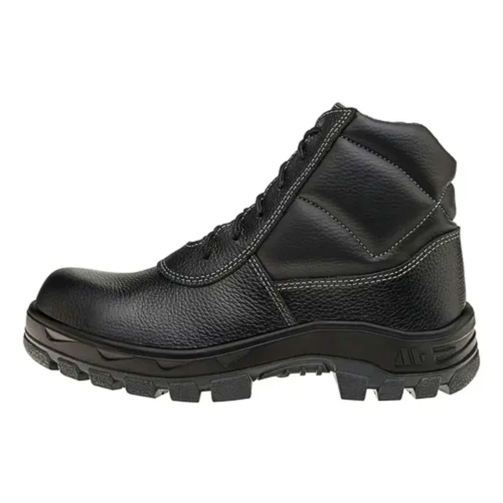 O bico composite garante proteção contra impactos sem conduzir eletricidade, além de ser mais leve que o bico de aço, aumentando o conforto durante longas jornadas de trabalho.